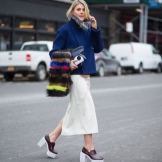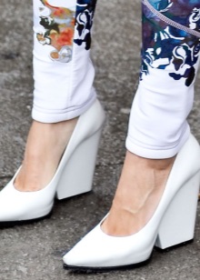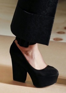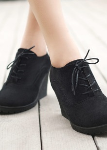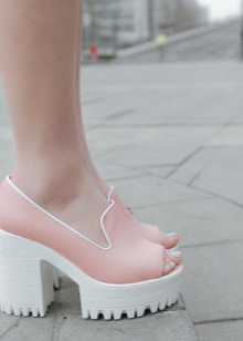 Looks great on legs and shoes on a platform or wedge. In such shoes, the stress on the foot is minimal, so you can go through them at least the whole day. Now the most popular model on a high platform. A slightly rough sole can be an interesting addition to the bow.