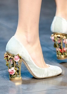 Does not lose its relevance and velvet. Now this material can be used not only for decoration. These shoes are especially attractive in combination with an unusual heel.