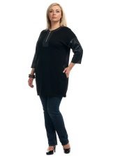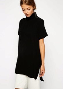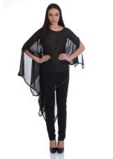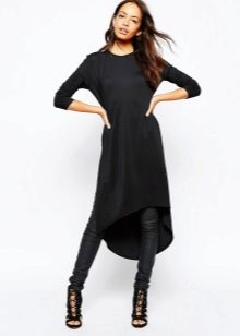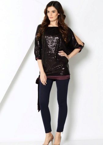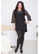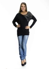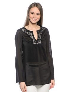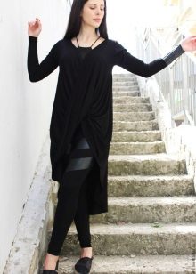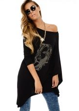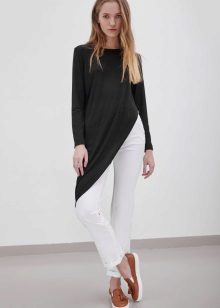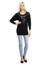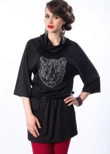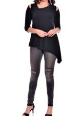 Black tunics can be either more classic, strictly look, and sports or evening, richly decorated. High-waisted flared models are suitable for those who want to hide problem areas, or for pregnant women, since nothing will put pressure on the tummy. Skinny fit for going to a festive event, for business meetings and work. Tunics with an asymmetric cut are widespread.