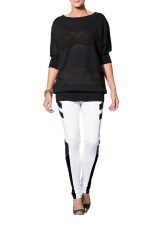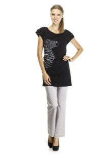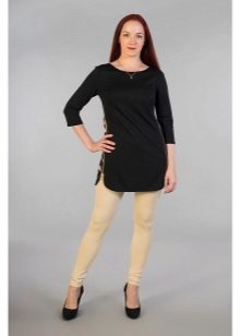 Black color is one of the basic, and therefore the most universal of all. Black tunics will be equally stylishly combined with monophonic things of bright or delicate shades, as well as with colorful ornaments. The most classic is to combine a black tunic with white trousers, a red skirt, or light blue jeans.