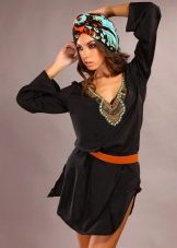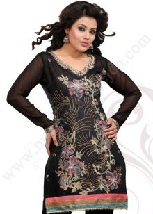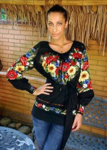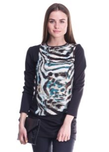 The trend of the season is ethnic, especially oriental, motives. Patterns, ornaments, stylized flowers and animals. Floral design of any style is also not only common, but also fashionable this year. It can be either large single flowers, contrasting in shade and especially standing out on a black tunic, or small ligature with leaves. And finally, animal prints are still in fashion, and on black products they can be found on individual elements.