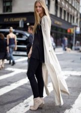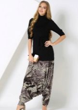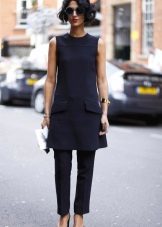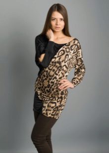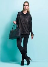 Most often, tunics are combined with jeans, trousers of various cuts, shorts, skirts, leggings, capri pants. If the tunic is flared, then the companion should be tight-fitting. Pants and jeans of loose fit, fluffy skirts will harmoniously look only with tunics of a fitted style in a figure. If you want to wear a sleeveless tunic in coolness, then underneath it may be a shirt or blouse. As in the case with a tunic dress, any shoes are possible, the main thing is to choose a pair that suits the style.