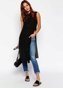 The standard tunic length is to the middle of the thigh. However, this is not the only option. They can be shortened (to the hips), medium (to the knee) and elongated (to the calf). This year, the maxi length is popular, that is, the floor length. With such tunics, it is best to choose high-heeled shoes so that the hem does not get dirty on the ground and does not interfere with walking.