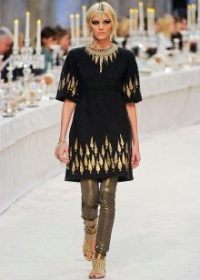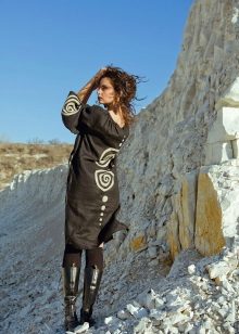 As for outerwear, the tunic can be worn under a leather jacket, cloak, coat, cardigan, jacket, the main thing is that the hem of the tunic does not peek out from under the edge. Of the jewelry fit gold or silver jewelry, jewelry. However, if the tunic itself is decorated with decorative elements, then other accessories should be modest.