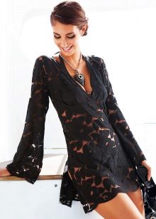 The most popular models are tunic blouses and tunic dresses. The second can act as an independent subject of wardrobe, and, depending on the length, be combined with other clothes. In the warm season, you can safely look for a knitted tunic sweater, and in the summer - transparent, lace, openwork patterns that can be worn on the beach. However, tunics from translucent materials are worn in urban conditions, the main thing is to choose the right underwear.