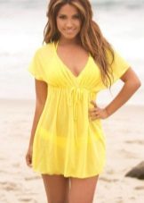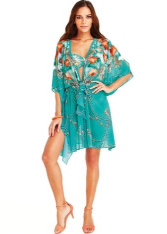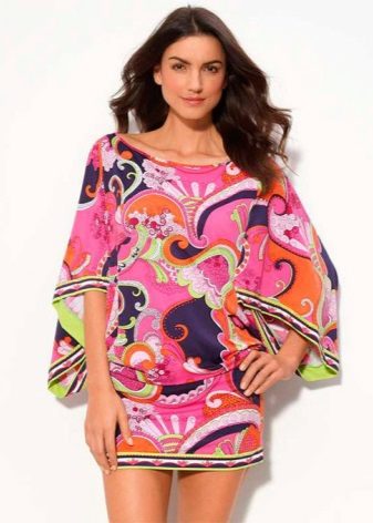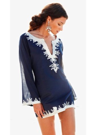 Designers offer several options for tunics for the beach: with or without fasteners, on a belt or laces, with a deep neckline on the chest, with long or short sleeves.