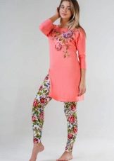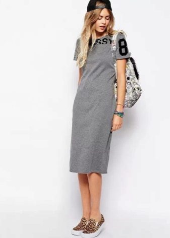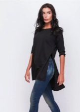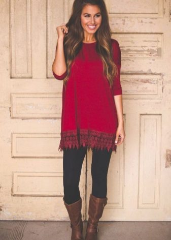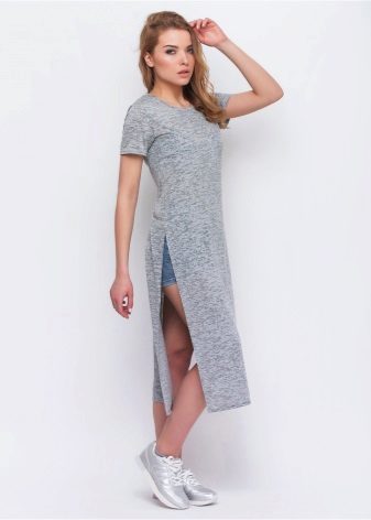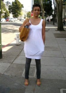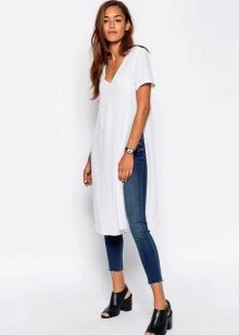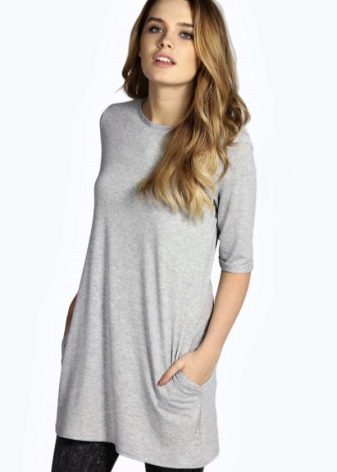 - T-shirt tunic. It is simple and democratic. Regular T-shirt, only an elongated version. It fits perfectly with casual style.