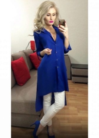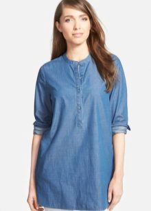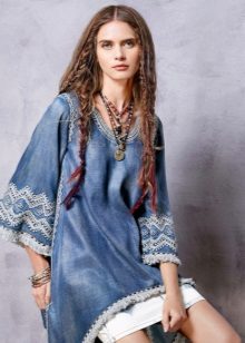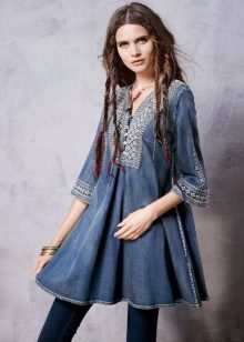 - Tunics made of denim. A modern option for a girl who loves practicality and convenience. They are combined with jeans, making up a denim total bow, as well as with trousers and blouses.