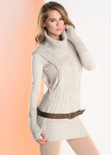 A long tunic and strap can be worn as a dress. But it is worth considering the features of your figure. This option is suitable for slim girls.
