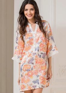 - Dressing gown tunic. Usually they sew with zippers, it is convenient to do household chores in them, they are free, do not constrain movements. They come from silk, knitwear, insulated, floor-length and shorter.