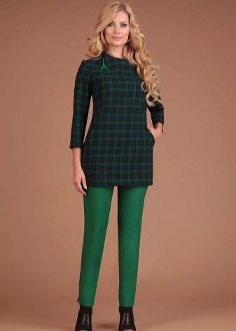 Tunic and pants. A universal image that is suitable for both work and informal events. Pants can be straight, flared, with arrows or tight. It is better to wear high-heeled shoes on the legs, this will give confidence and charm.