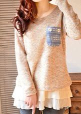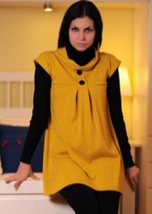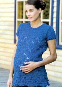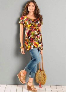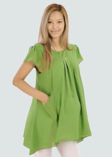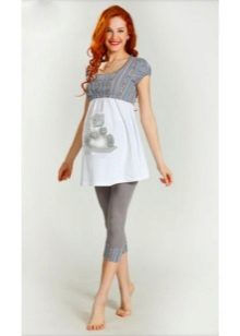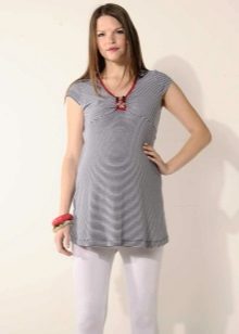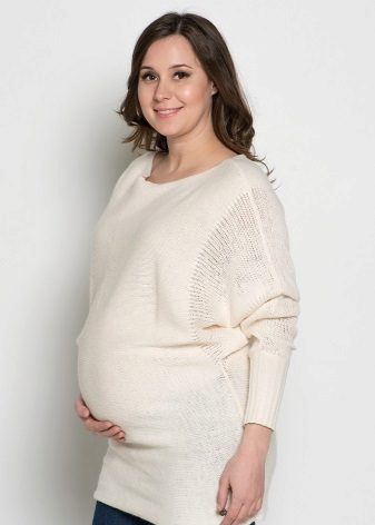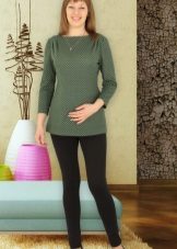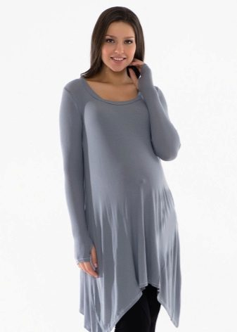 The tunic for pregnant women can be of different lengths: slightly cover the hips or completely cover them.