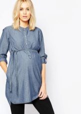 Tunics for pregnant women from denim are in great demand. Denim models are presented in a free cut. To emphasize an interesting position, you can complement the tunic with a belt.