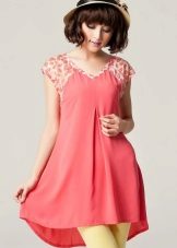 Today, the trend is tunic asymmetric cut with a deep neckline. In this model, you will always look stylish and attractive. If a pregnant girl wants to hide her tummy from others, then models with a high waist will be an excellent choice. Designers also offer styles with a drawstring that runs under the stomach, so you can, on the contrary, emphasize an interesting position.