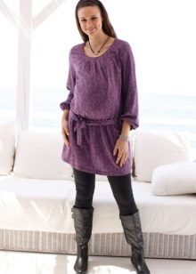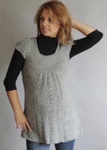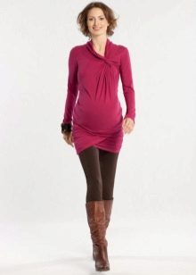 For the cold season, it is worth choosing a warm model. For such tunics, dense fabrics are used - cloth or wool. The winter model will help the expectant mother protect herself and the baby from the cold. Such a tunic can be presented in the form of a sweater or dress.