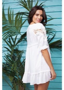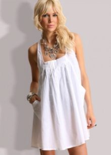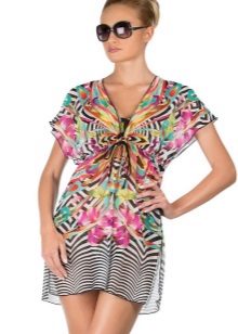 Girls to relax on the sea must buy a beach tunic. She reminds a short dress made of light fabric. This model perfectly protects the stomach from ultraviolet rays, and also opens the arms and chest.