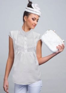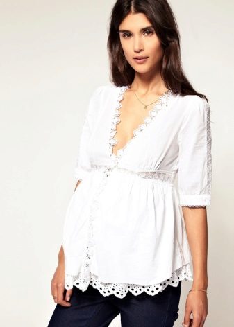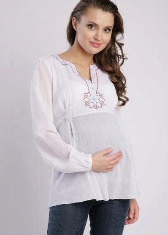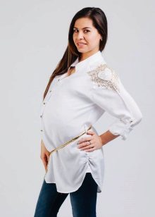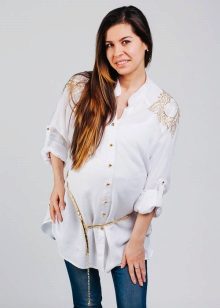 A white tunic is an ideal choice for a pregnant woman. From a psychological point of view, this color is calming and relaxing.