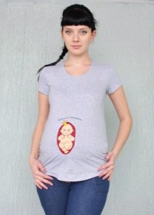 A separate group consists of models with funny inscriptions. In anticipation of a child, girls become quite sentimental. A cheerful inscription depicting a baby will definitely cheer you up.