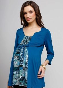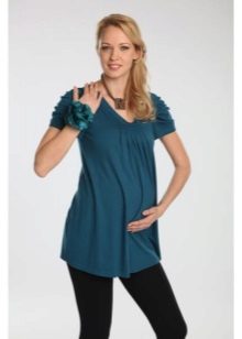 Many models of maternity tunics are decorated with a variety of decorative elements. Models with embroidery, lace or ribbons will appeal to even the most demanding fashionista. The decorated model will help to give the image of femininity and originality.