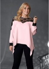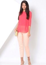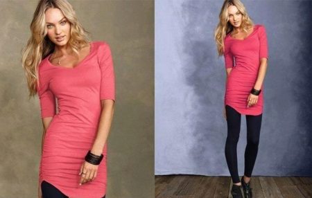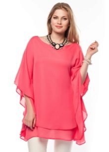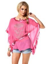 A tunic made of transparent pink silk, shiny satin or chiffon looks great as an evening option. The creation of such a bold image must be approached especially carefully so that the outfit does not turn out to be vulgar.