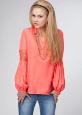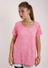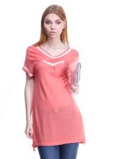 A tunic made in light, delicate tones of pink color is ideal for fair-skinned girls. More intense, vibrant tones, close to the crimson color go brunettes.