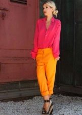 Pink color is very noticeable and catchy. The brighter the shade, the more calm the colors should be associated clothing and accessories.