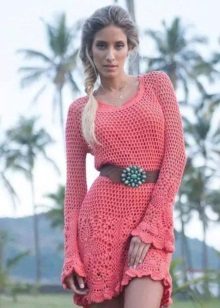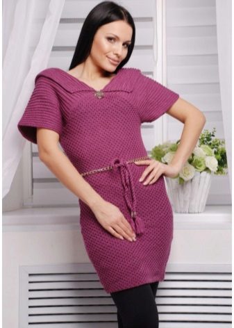 Bright knitted tunic is a great option for everyday life. The knit can be large, thick, embossed or light, openwork. Tunic nets or patterns made in large knitting are especially relevant.