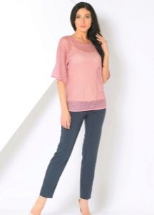A pale pink tunic is perfect for creating a wide variety of looks. It can be the basis for creating a business suit, romantic outfit, everyday clothing ensemble.
