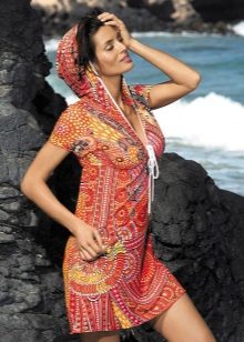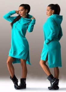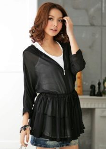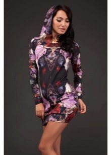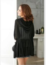 The style of the tunic also depends on the selected material. From lace, guipure, mesh, shiny yarn, very elegant tunics are obtained, despite the presence of a hood.