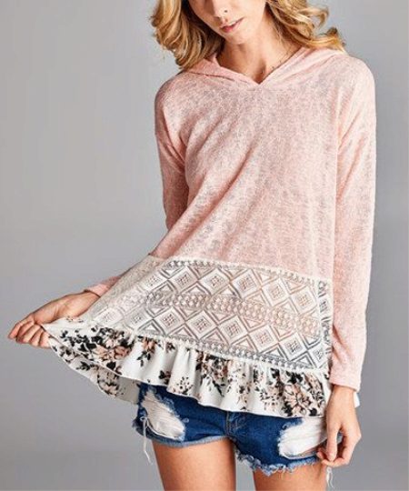 The presence of a hood does not oblige the tunic to be boring. A loose model with delicate lace or guipure inserts will seamlessly fit with tattered shorts.