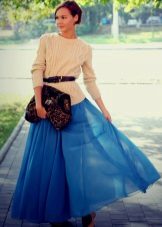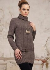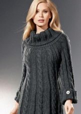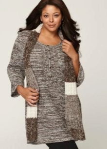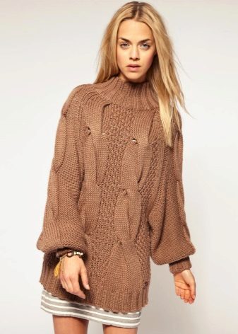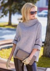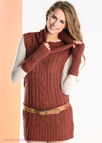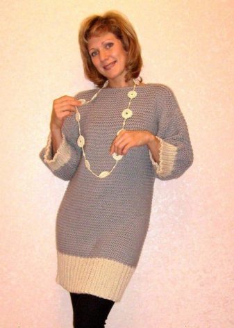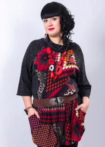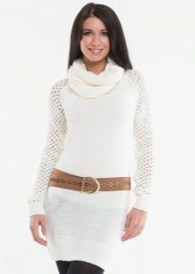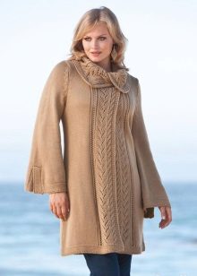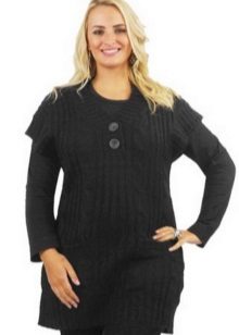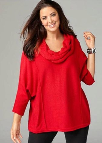 If the task is to hide the extra pounds in the abdomen and sides, then winter tunics with a high A-line waistline or Empire style will come in handy. Another good style for overweight ladies is the “bat” model with sleeves, complemented by a wide elastic band on the hips. Such a knitted product will successfully mask all the flaws of the figure and emphasize the femininity of their owners.
