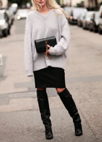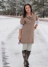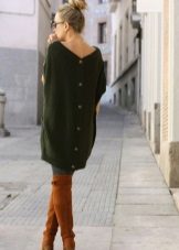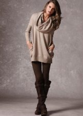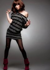 From shoes for a winter tunic, it is preferable to choose high boots of the pencil-in-glass style. Warm tunic dresses harmonize perfectly with leather or suede high-heeled boots.