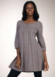 Empire style high-waist winter tunics, gathered under the chest, are especially in demand by full ladies and expectant mothers. Such tunic A-silhouette skillfully hide extra pounds in the abdomen and sides, and they are also able to balance the lush hips. A not too deep V-neck will emphasize the luxurious chest.