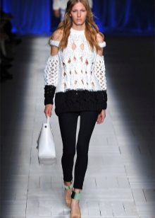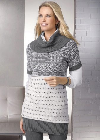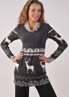 Winter tunic can be openwork or continuous knitting, quite popular are products with knitted patterns in the form of braids, braids and rhombs, as well as tunics with a Norwegian pattern, usually animals and snow motifs.Winter tunics that imitate hand knitting look especially interesting.