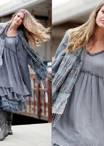 Winter tunics in a romantic style are usually trimmed with print, bows, ruffles and other decor.