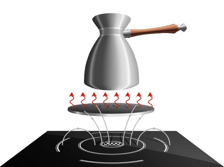 But you can not deny yourself the pleasure of using familiar dishes, including clay and ceramic Turks. Enough to stock up on the adapter of the desired diameter of the ferromagnetic alloy. As a rule, on a four-burner panel it corresponds to a heating field with a diameter of 12-14 cm.
