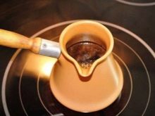 Important! Ceramic Turk cools down for a long time, so you should not wait until the foam from coffee begins to rise. As soon as the bubbles are noticed, it is worth immediately removing it from the fire, then the coffee will not “run away”.