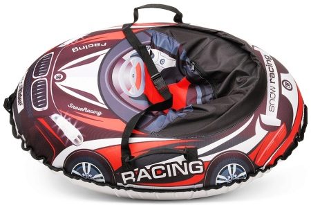 Tubing is an inflatable sled based on a car camera, which is covered with dense material.. The product has a bottom, handles and a tow rope. The bottom of the cheesecake is covered with two-layer polyvinyl chloride, due to which the friction of the tubing against snow is reduced and a higher speed develops.