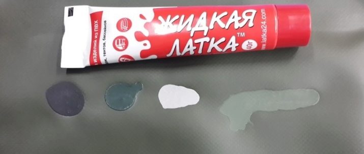 - Liquid patch. It is a monocomponent composition containing special reagents capable of melting the outer layer of the PVC coating. After cooling, such a patch is firmly fixed to the tubing surface.Latka is presented in stores in an extensive color palette, so you can always choose the right tool.