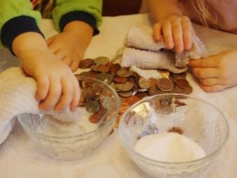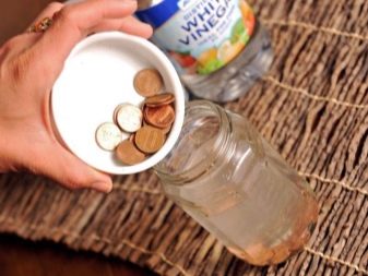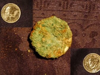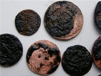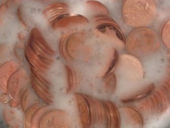 Often there are greenish raids on coins. Citric acid is poured 1/10 in a glass of water, and then pure water is added to the top. Then, coins are carefully placed in a glass and they monitor the reaction. As soon as all the liquid turns green, the products are removed, thoroughly washed and slightly polished.
