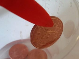 A ten percent solution of vinegar in water is able to quickly remove yellow plaque. When the dirt comes off, the mixture must be carefully drained, and the coins washed in warm water. Until they are washed, taking them with unprotected hands is not recommended! The red layer is removed with 5% ammonia - sometimes it takes several hours to keep copper circles in it, otherwise the original form will not be returned. As always, after cleaning with any compound, washing in water is mandatory.