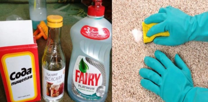 All ingredients are thoroughly mixed, the resulting composition is applied to the contaminated areas and lightly rubbed with a toothbrush or foam sponge. After 10-15 minutes, the remnants of the soap-soda solution are removed with a clean damp cloth, and then the treated area is wiped with a paper towel.