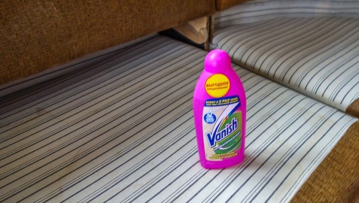Vanish - An effective stain remover used to remove old and fresh stains of various origins. The product is available in liquid, gel and powder forms. This stain remover can be used for cleaning sofas with upholstery from natural and artificial fabrics. The product eliminates unpleasant odors, quickly and effectively removes stains from grease, drinks and food, cosmetics, juice and pollen from plants, as well as traces of blood, sweat and other vital products of humans and animals.