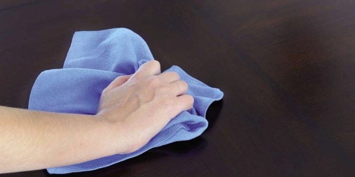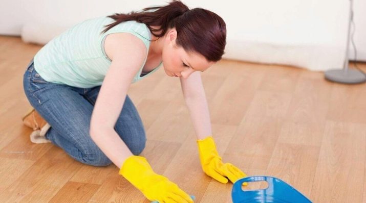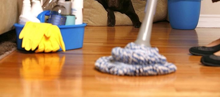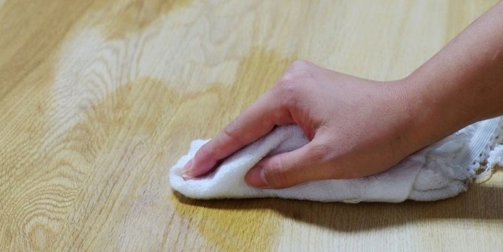 To treat the place of contamination, you need to moisten a cotton swab or a small piece of cloth and use it to treat the stain on the floor.