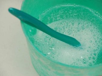 - dilute a small amount of the selected product in a container filled with warm water until foam appears;
