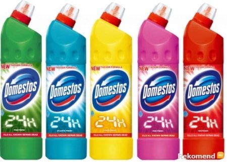 - Also, to remove greasy stains from the windowsill, you can use degreasing agents for the kitchen. Significant dirt, rust and difficult stains to clean will help Domestos for the bathroom. We apply the product to the surface, leave it to act for 20 minutes, and then thoroughly rinse with water.