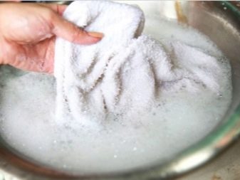 For hand washing, vinegar can be used to soak the product. It is necessary to draw water into the basin and add a little vinegar. Soak a towel in the resulting liquid for a while. This will also get rid of stubborn stains.