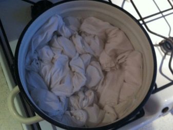 - A well-expanded set of linen is placed in a pan, poured with a prepared soapy solution;