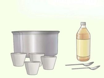 - Dilute the vinegar in water (1 cup per 1 liter) and pour the pan into the resulting solution.