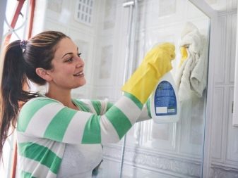 To wash the bathroom mirror, as well as the glass structures of the shower cabin, should be as careful as possible. It makes no difference whether you use products made in factories or made from improvised components, they all evaporate actively. As a result, you may experience sudden poisoning, if the concentration of the active substance in a confined space is critical.